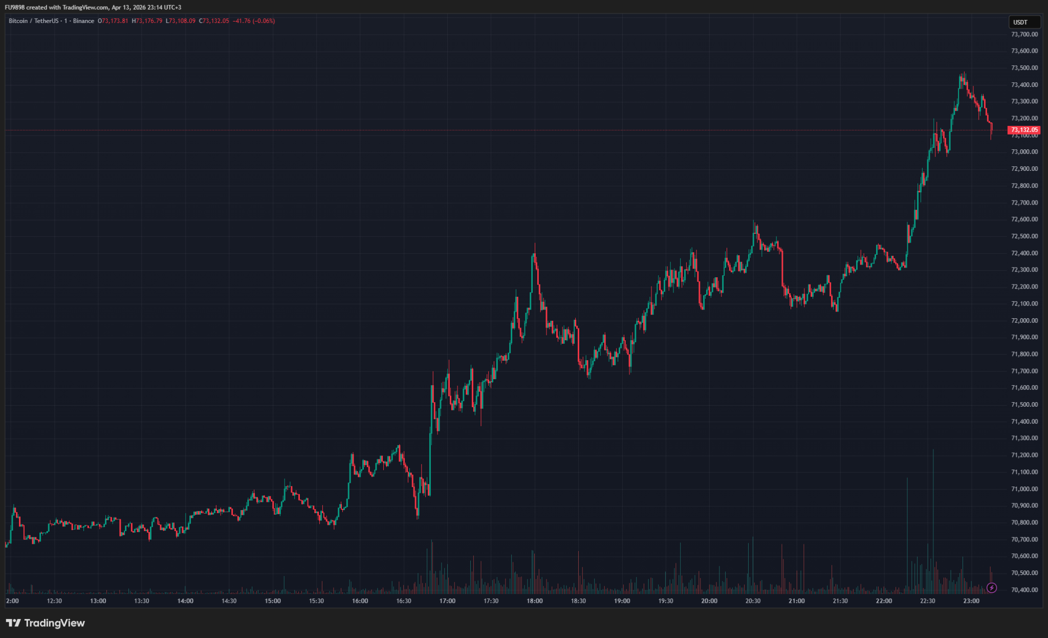 价格稳步回升,逼近七万三千美元关口