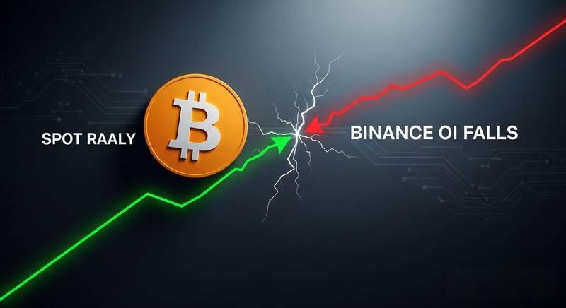 摘要:比特币价格反弹背景下,币安未平仓合约大幅下降31%,反映市场正经历去杠杆重置。尽管期货参与度减弱,现货交易量上升与资金费率转负暗示上涨由真实需求推动,但趋势持续性仍待验证。
