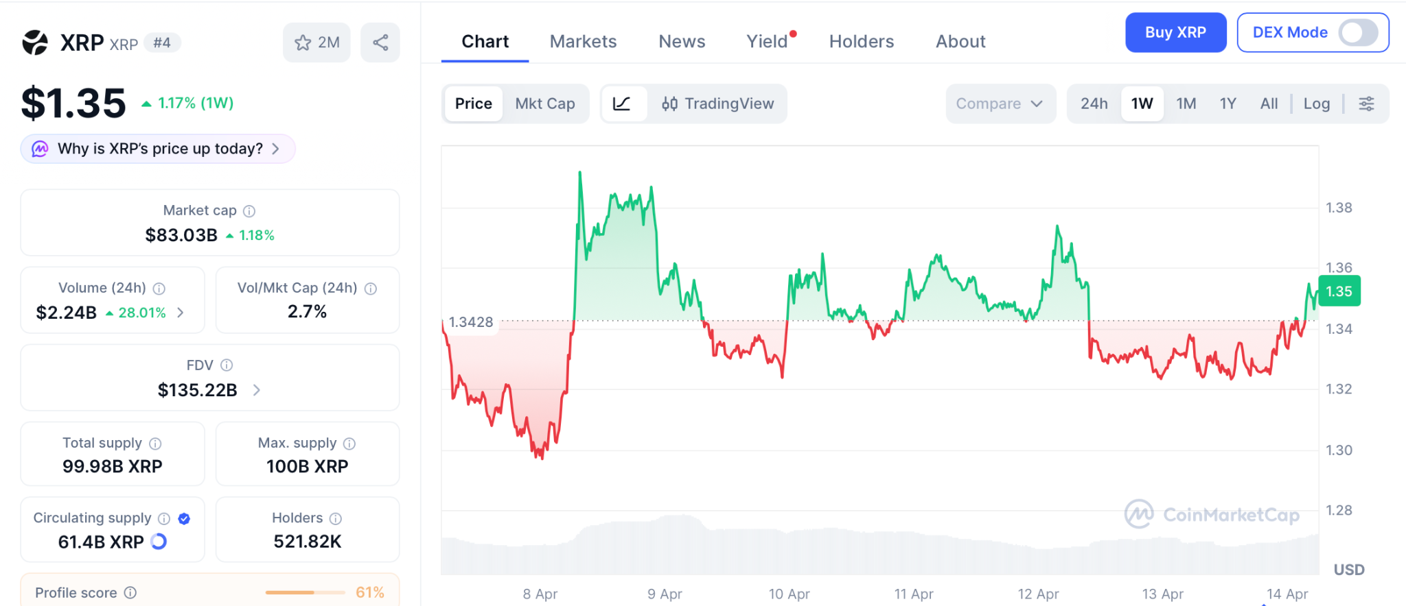 当前市场焦点集中于4月16日美国证券交易委员会举行的市场结构圆桌会议,以及参议院自4月13日复会后开启的《清晰法案》修订程序。两项进程将共同决定瑞波币未来数周的价格波动方向。尽管目前价格稳定在1.35美元附近,但潜在催化剂正逐步显现。