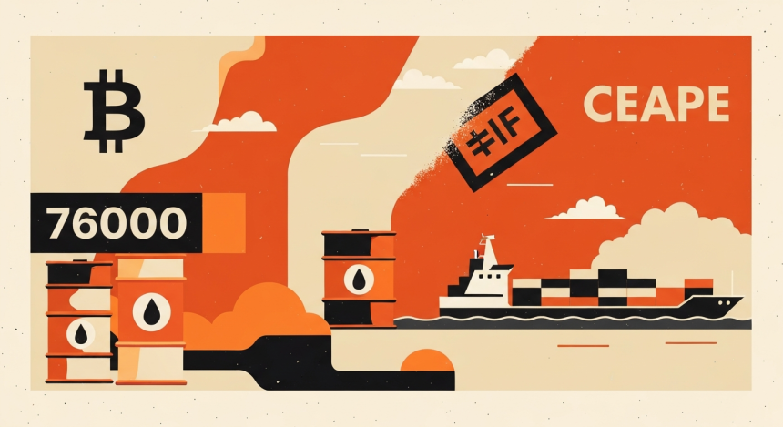 近期比特币价格再度挑战76,000美元关键位,但未能实现有效突破,反映出上涨动能正在减弱。虽受美伊关系缓和预期推动出现短暂回升,然而当前市场已不再满足于空泛的和平展望,转而要求可见的经济与供应链层面的实际改善。