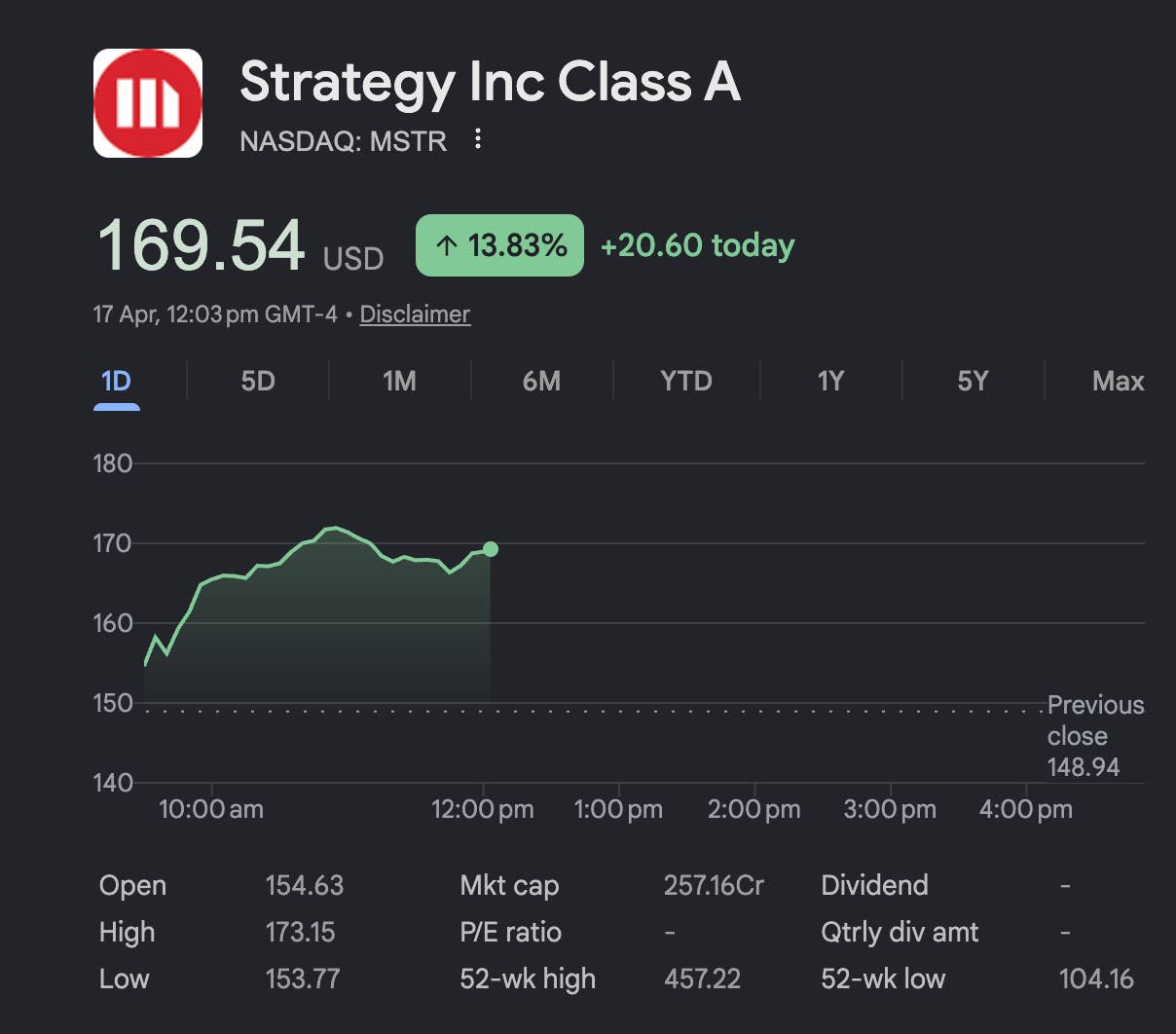4月17日交易日中,由迈克尔·萨伊尔主导的纳斯达克上市公司股价出现明显跃升,涨幅逾一成三,成为当日市场焦点之一。此次波动与比特币价格突破78,000美元大关形成共振。