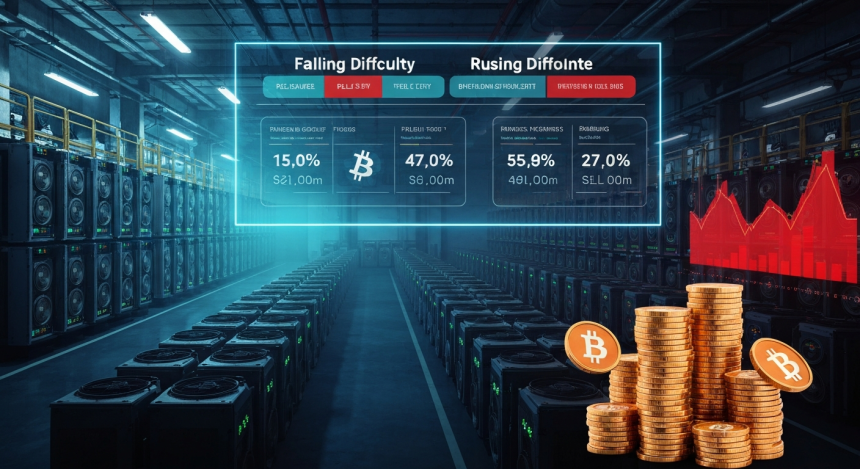 最新数据显示,比特币网络挖矿难度已回调至约135.5T,过去24小时降幅约为1.1%。这一调整意味着当前区块生成的计算复杂度略有降低,有助于缓解部分矿机的运行负担。然而,根据预测,下一次难度更新将于2026年5月1日启动,届时预计升至137.43T,再度抬高挖矿门槛。