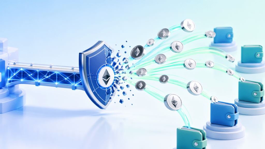 漏洞触发后,攻击者立即启动有计划的资金分流。其中包括将两笔分别达25,000枚和50,700枚ETH的资产注入独立钱包,并穿插小额交易以混淆路径。这种手法旨在规避集中监控,同时为后续跨链兑换创造条件。