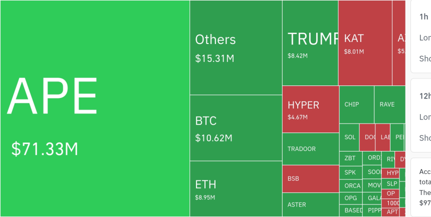 从具体资产维度看,比特币相关仓位在24小时内被清算约1062万美元,以太坊同期约为895万美元。而Solana成为平仓金额最高的单一币种,总额达1.0531亿美元。另有两种热门代币在价格微跌背景下分别产生825万美元和317万美元的强制平仓。同时,一款政治主题类代币因价格暴跌,也遭遇大规模杠杆爆仓。