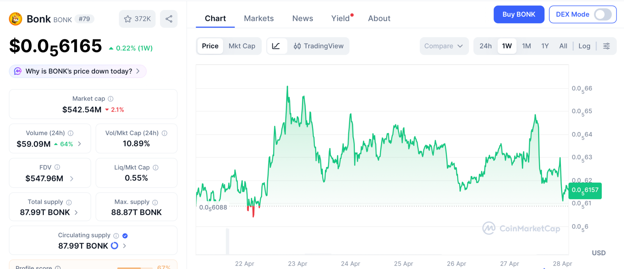 BONK突破趋势线,月度涨势达75%,目标位指向0.0000080美元