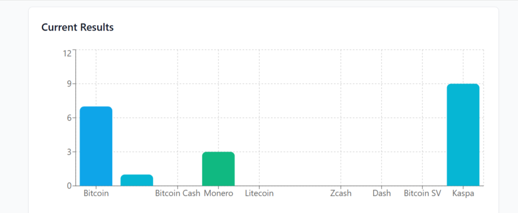 一场由专为霍萨特网络设计的去中心化治理平台Hoosat Vote发起的链上投票活动,正引发工作量证明加密生态的广泛关注。本次议题聚焦于参与者对主流工作量证明项目的首选倾向,初步数据表明卡丝帕已超越比特币、门罗币等传统代表项目,占据领先地位。