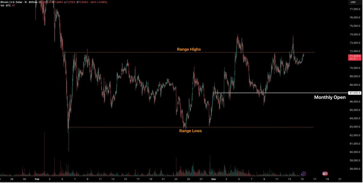 清算压力测试显示,72,500美元附近存在约24亿美元空头集中清算区域,若价格突破该位或触发空头挤压。与此同时,7万美元下方亦存多头止损带,短期波动风险仍存。研究指出,只要资产效率比率维持高位且ETF与机构资金持续净流入,市场突破当前价格区间上限的可能性将显著增强。