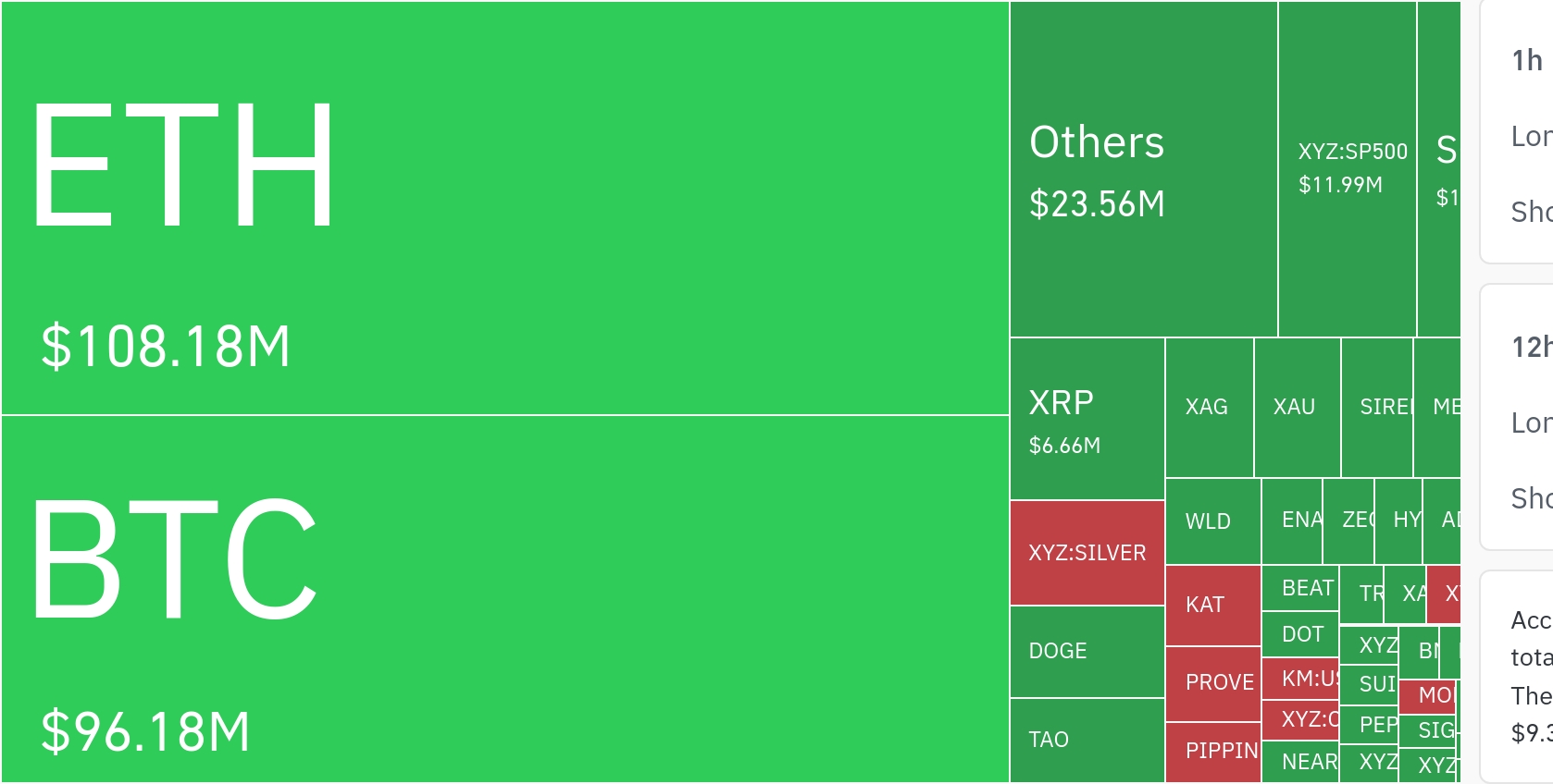 在清算总额中,以太坊(ETH)占比最高,达1.0818亿美元;比特币(BTC)紧随其后,清算金额为9618万美元。其余资产方面,其他加密货币、标普500指数相关衍生品及XRP分别录得2356万、1199万和666万美元的清算规模。