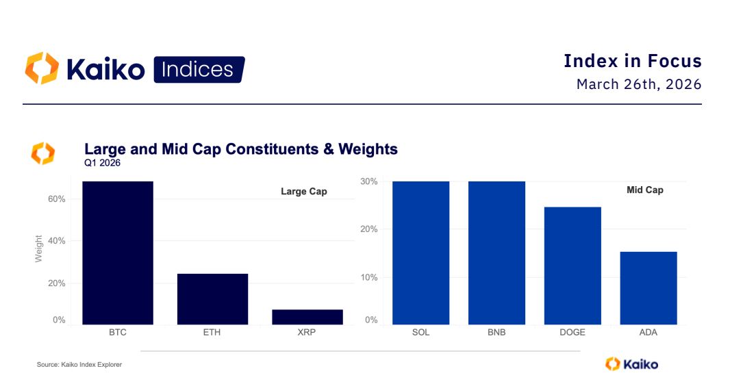 根据分类标准,市场被划分为三类:大型资产以比特币、以太坊为代表;中型涵盖索拉纳、币安币、狗狗币、卡尔达诺等主流替代币;小型指数则由约89种低流动性资产构成,最能反映市场广度与零售参与程度。