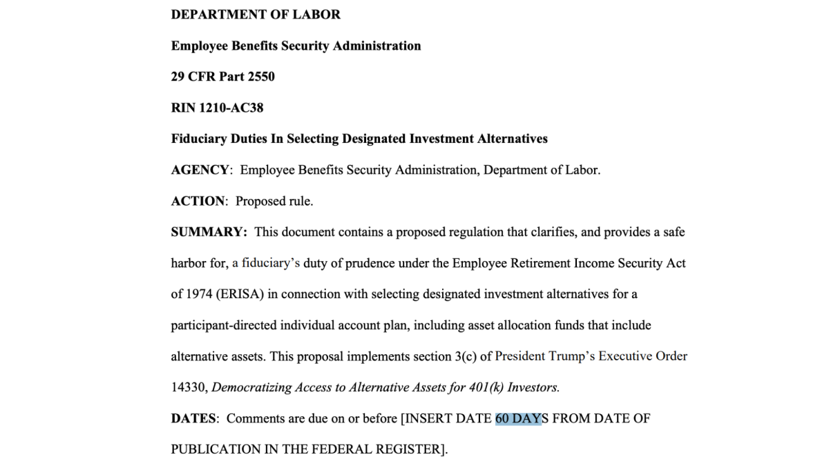 接下来的60天公众意见征询期将成为决定性环节。资产管理公司可提交扩大投资范围的建议,监管机构将收集风险控制反馈,行业组织则有望推动建立更健全的投资者保护机制。劳工部将在综合各方意见后修订提案,并发布最终实施规则,为后续落地奠定法律基础。