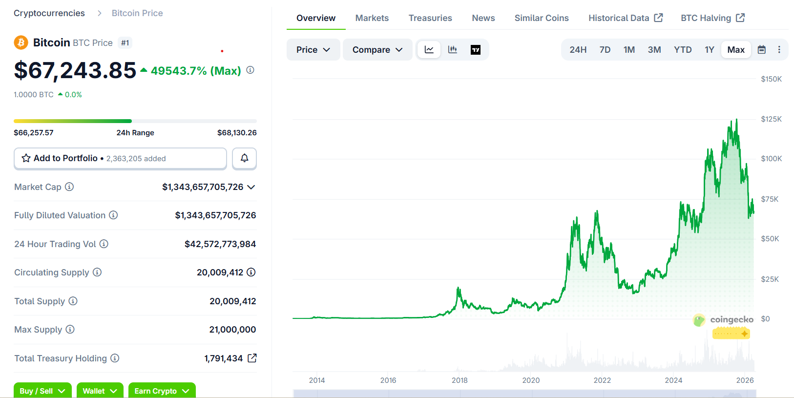 根据CoinGecko数据,比特币自2015年以来实现跨越式增长,2025年10月一度突破12.6万美元,目前交易价约6.7万美元。这意味着最初2900枚比特币在峰值时价值高达3.65亿美元(涨幅约46,500%),即使在当前价格下仍值1.94亿美元(上涨24,800%),波动虽存但整体趋势不可逆。相较之下,同期黄金从每盎司1200美元升至4500美元以上(涨幅275%),标普500指数累计回报率约284%,均无法与比特币的爆炸式增长相提并论。