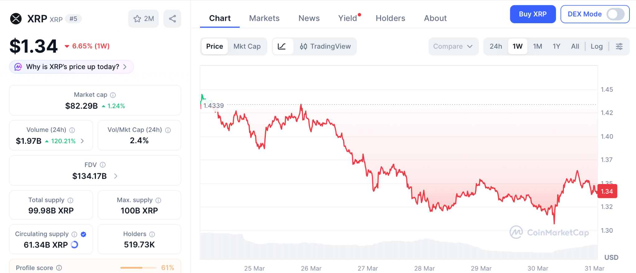 根据CoinMarketCap数据,瑞波币现价为1.34美元,周度ETF资金流入达957万美元,支撑价格在高位震荡。分析师普遍看涨,目标位突破1.50美元后有望触及2.00美元,数月内带来约47%的回报。然而,面对820亿美元的庞大市值,其增长速度已趋于平缓,难以再现早期暴涨。