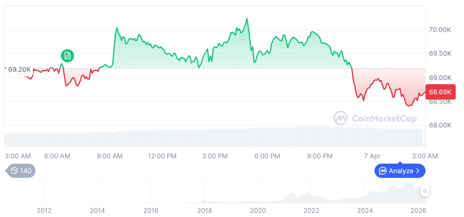 最新行情显示,比特币报价为68,672美元,折合约1,041万韩元,较前一交易日下滑0.7738%。以太坊同步走低,报2,106美元,约合319.1万韩元,跌幅达1.2545%,市场情绪偏谨慎。