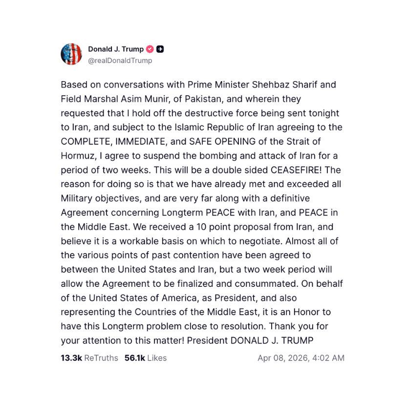 行情转折点始于美国总统唐纳德·特朗普通过Truth Social平台发布停火声明。该消息公布后,比特币价格迅速冲高至72,700美元,短时间内扭转了此前连续多日的下行趋势。