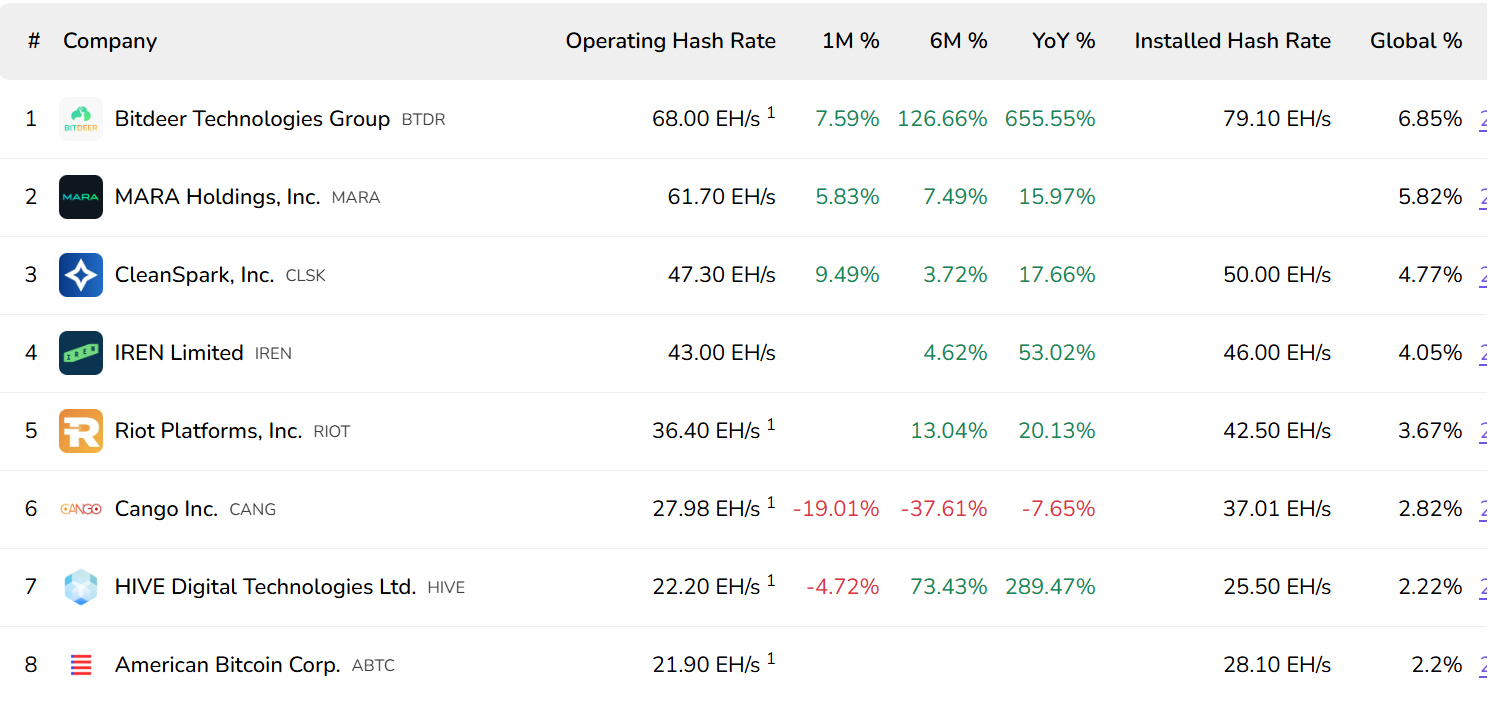 根据BitcoinMiningStock数据,Cango位列全球第六大比特币矿企,当前算力达每秒27.9艾哈希,占全网总算力的2.82%。公司总运营算力为37.01 EH/s,其中自有挖矿设备贡献27.9 EH/s,另有9.02 EH/s来自算力租赁。