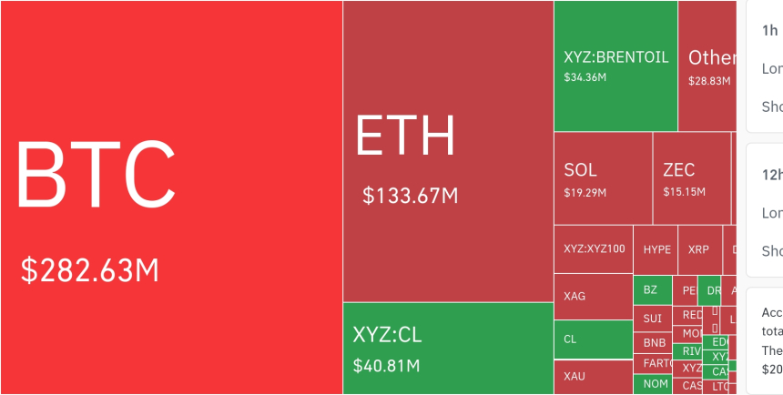 从币种维度看,比特币相关头寸是本次清算的首要目标。24小时内,比特币杠杆头寸清算额约为2826.3万美元;若以4小时为观察窗口,最大单时段清算规模高达6.09亿美元。