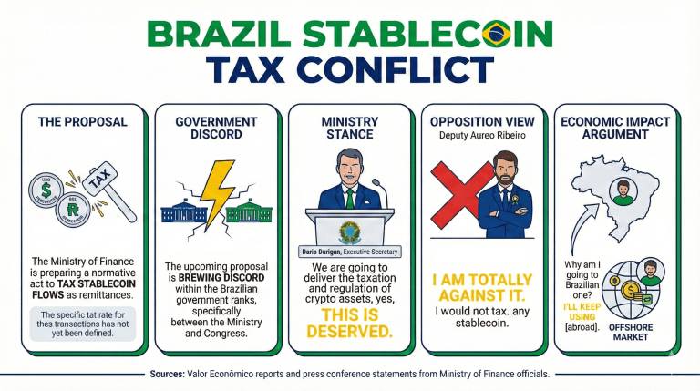 即将提出的一项旨在将稳定币流量作为汇款征税的提案正引发巴西政府内部意见分歧,因为财政部正准备采取行动。