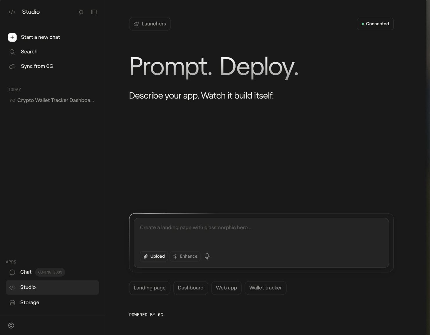 应用启动器支持从指令到部署的端到端流程,配备实时反馈与迭代优化功能。智能体启动器则基于OpenClaw协议与0G计算层,实现一键部署专属AI代理。未来即将推出的代币启动器将引导用户在0G链上完成代币发行全过程。