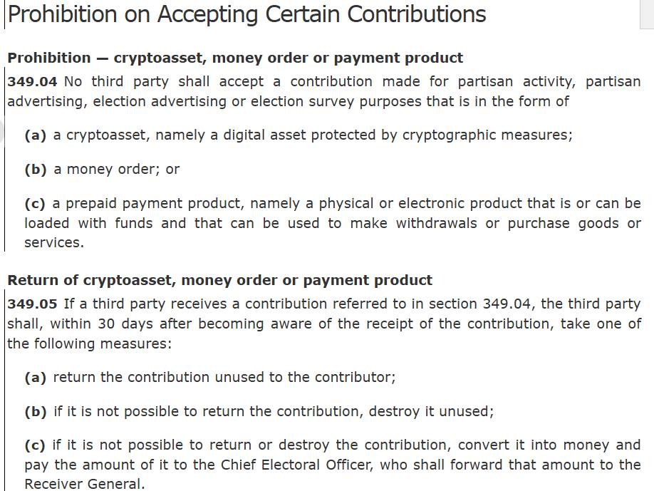 加拿大推进立法禁止加密货币用于政治筹资