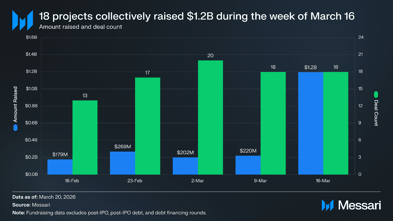 据公开披露数据,本周共有18个区块链项目完成融资,总金额达约12亿美元。其中,卡尔希以10亿美元融资额领跑,蓝天则获得1亿美元资金支持。艾恩莱特为构建证券代币化基础设施筹集2100万美元;真思人工智能获2000万美元投资,用于发展其融合人工智能与区块链的广告网络体系。此外,西卢埃特交易所聚焦链上订单的隐私执行技术,斩获800万美元种子轮融资;德里维奥则成功募集600万美元,用于开发由人工智能驱动的交易终端。