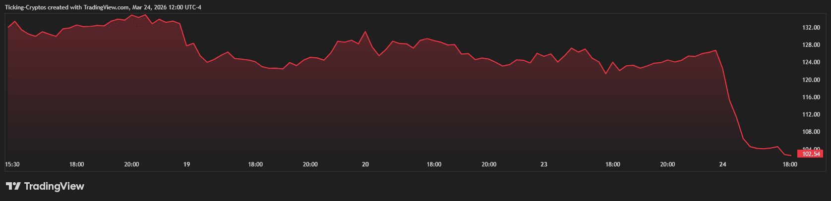受影响的不止是Circle。Coinbase(COIN)也同步下跌逾8%,因其为Centre Consortium关键成员,共享USDC带来的收入分成。当前市场处于避险情绪主导状态,叠加美联储鹰派表态以及地缘政治紧张推高油价,加剧了风险资产抛售压力。