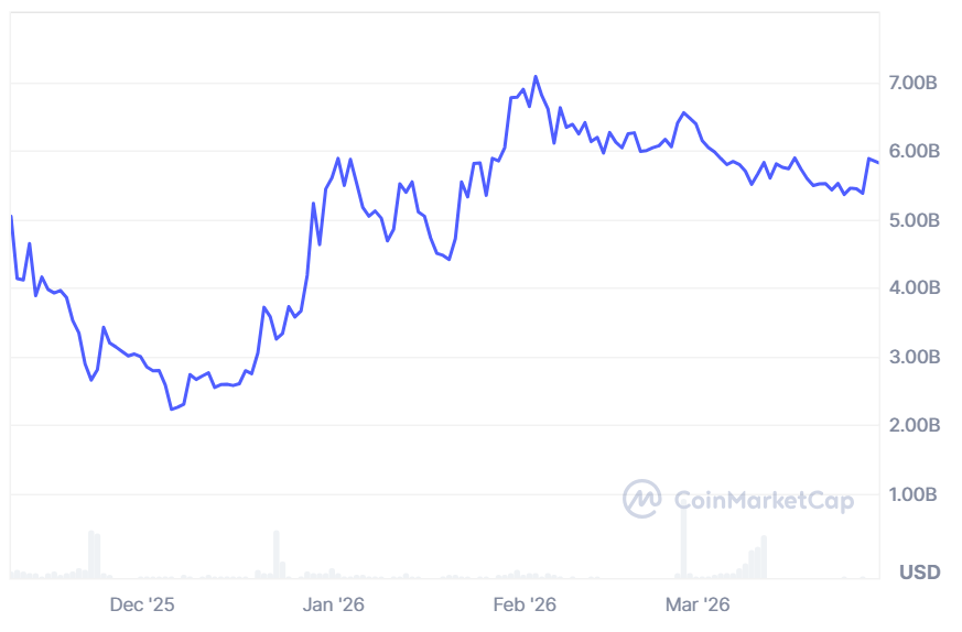 据CoinMarketCap数据显示,自2025年底以来,Canton Coin市值稳步攀升,目前已逼近60亿美元。这一增长背景正是全球对合规型许可区块链网络关注度持续升温的结果。