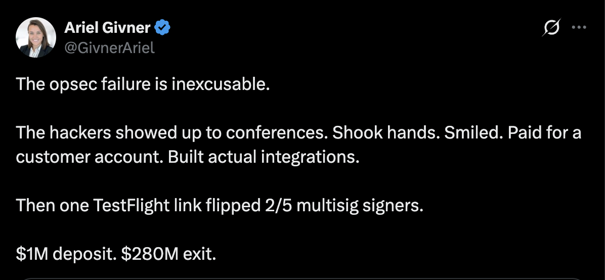 她强调,所有成熟项目都清楚加密领域面临国家级黑客威胁,尤其是来自朝鲜的组织。然而,Drift团队却长期在Telegram上与陌生人交流,在技术会议上随意接触未知身份人员,接受可疑代码仓库访问,并在多重签名设备上安装未经验证的应用程序,为攻击创造了条件。