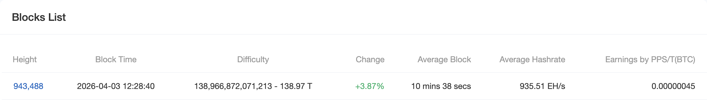 比特币网络在区块高度943488迎来3.87%的难度上调,成为2026年以来第三次向上调整。此次变动发生在算力回落与挖矿收益萎缩的背景下,反映出加密挖矿生态正承受显著压力。