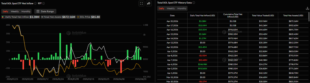 美国上市的Solana现货ETF在周一录得328万美元净流入,叠加前一周期的3517万美元,已实现连续五个交易日资金净流入。据SoSoValue追踪数据,这一趋势彰显成熟资本对SOL长期配置的信心。