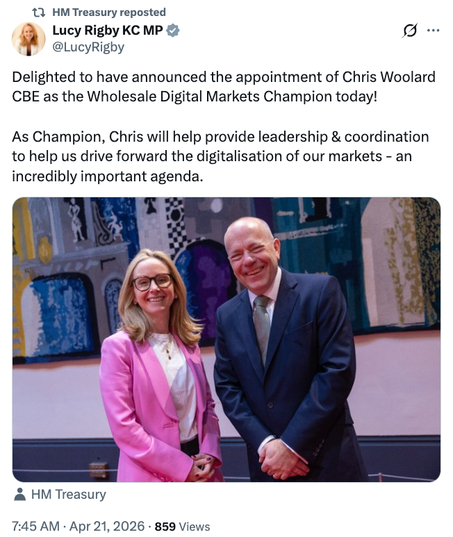 前金融行为监管局高级官员克里斯·伍拉德被委任为批发金融市场数字战略倡导者,将牵头推动代币化数字资产在机构间的实际应用。他强调,公私合作机制将成为支撑英国在全球数字金融领域保持领先地位的关键驱动力。