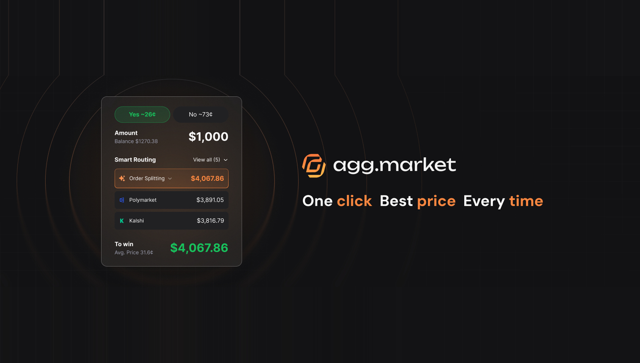 agg.market应运而生,其核心定位为预测市场的智能比价引擎,用户只需一次查询即可锁定全网最低报价,彻底打破信息壁垒。