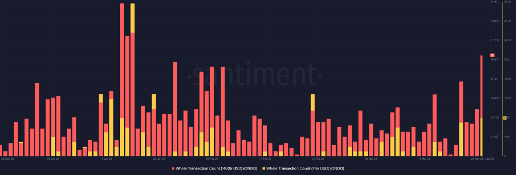 从技术图表观察,经过2025年至2026年第一季度的深度回调后,ONDO/USD已重返关键的历史性积累区间。值得注意的是,此次资金流入并非散户情绪驱动,而是具备明确结构支撑。