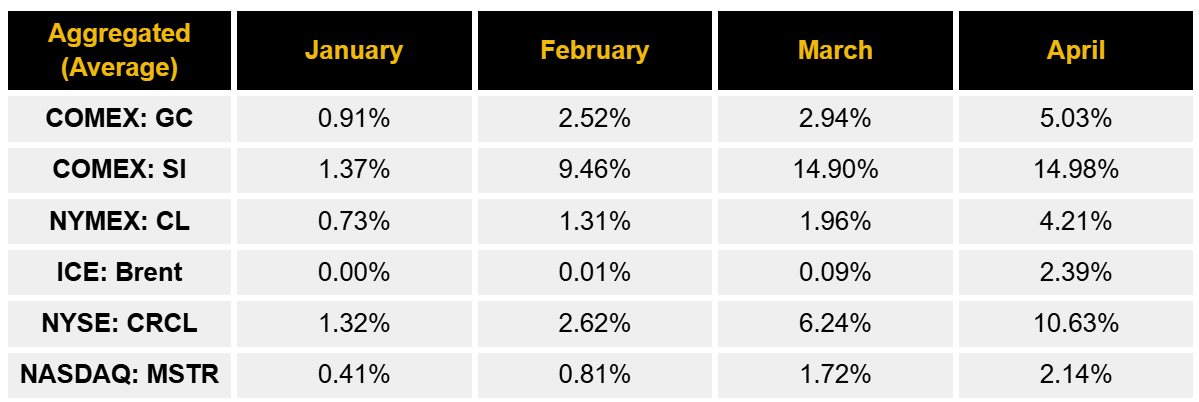 报告特别指出,三月份代币化黄金合约交易量分别达到日本能源商品期货交易所的401%、印度多种商品交易所的228%以及迪拜黄金与商品交易所的216%。币安分析认为,部分增长源于周末频繁出现的市场波动事件,这些事件导致仅在工作日运营的传统渠道无法满足投资者避险或套利需求,从而催生了对全天候交易工具的刚性依赖。
