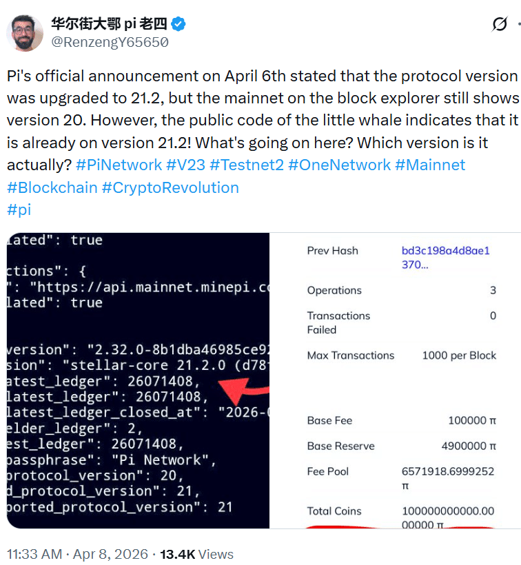 Pi Network协议升级引发链上信息分歧,技术演进与展示滞后形成张力