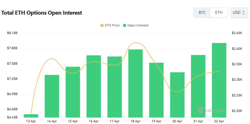 按24小时交易量排序,最活跃的前三名合约分别为:1400美元看跌期权(4月24日到期,交易集中于Bybit)、2000美元看跌期权(6月26日到期,由Deribit主导)以及2500美元看涨期权(4月24日到期,同样来自Deribit)。这表明近期市场参与者更倾向于在较低价格水平设置保护性头寸。
