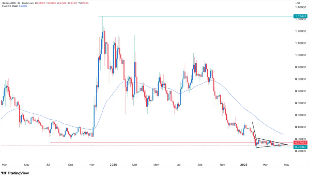 卡尔达诺代币价格持续在0.25美元区间波动,反映出市场需求持续疲软。自2月以来,该币种基本维持在这一水平,未出现明显突破迹象,表明投资者参与意愿低迷。