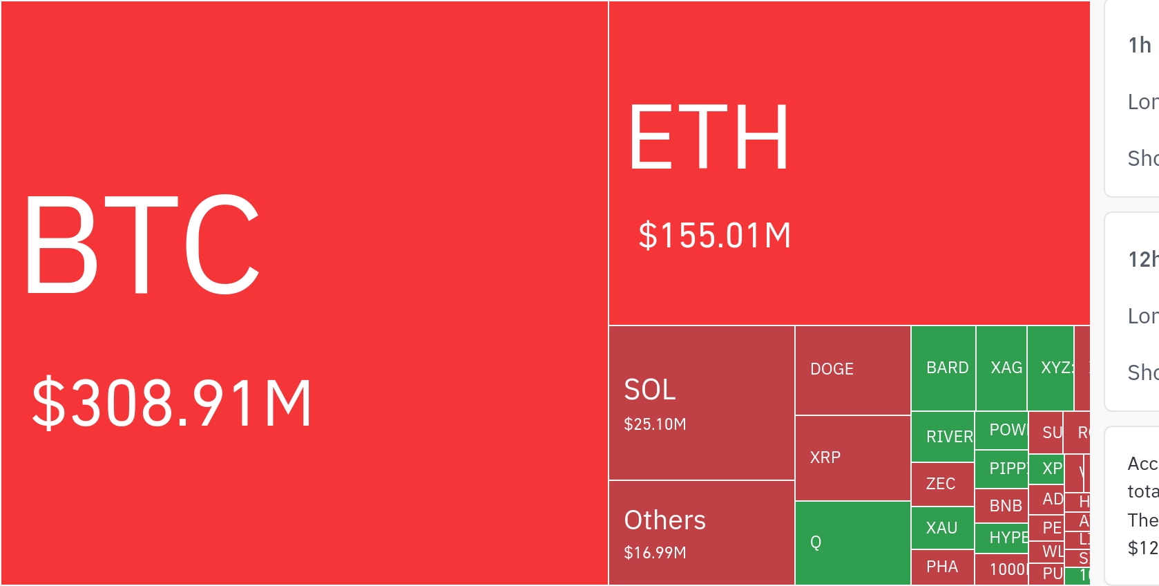 比特币相关仓位清算金额达3.0891亿美元,成为最大清算标的。伴随其价格攀升,大量空头头寸被强制清除。以太坊紧随其后,24小时清算规模约为1.5501亿美元,同样呈现空头主导格局。 Solana在24小时内清算额为2510万美元,其中空头部分高达2091万美元,是多头清算额(414万美元)的五倍以上。尽管在4小时时间框架内多空清算相对均衡,但全天数据仍显示空方压力显著。 XRP上涨4.76%,清算总额868万美元,空头占比达73%。狗狗币涨幅达8.23%,清算911万美元,空头损失占72%。ZEC飙升8.29%,清算242万美元,空头占比高达82%,且4小时窗口下空头清算额为多头四倍以上,凸显剧烈波动下的空方困境。 ADA上涨5.02%,清算93万美元,空头占比67%。黄金挂钩代币如XAUT和PAXG虽涨幅微弱(分别+0.12%和+0.09%),但合计清算239万美元,显示非主流资产亦受波及。市场情绪转向与交易策略建议