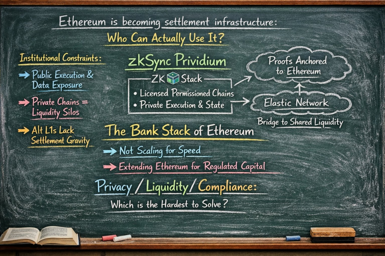 随着以太坊持续扩容,行业讨论焦点正在转变。问题已不再是区块空间供给,而在于受监管的资本能否在不暴露内部工作流程、不割裂流动性的前提下参与其中。 根据对多数机构模型的研究,其面临的制约具有共性:公开执行会暴露过多运营数据;独立的私有链会与共享流动性隔绝;而其他一层网络则缺乏以太坊的结算引力。这正是Zksync Prividium在架构上的突破方向。Zksync Prividium的架构创新