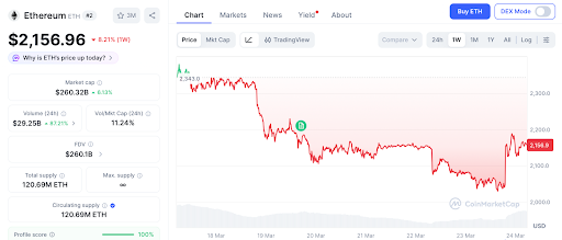以太坊维持在2,156美元,市值2330亿美元。尽管现货ETF带来机构资金流入,但其从4,800美元高位回落,即使重返4,000美元,收益亦仅为约2倍。