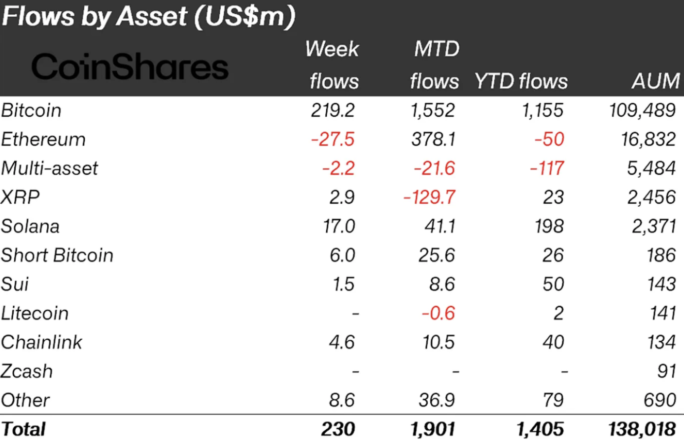 整个加密基金市场年初至今实现14.05亿美元净流入,其中比特币贡献11.55亿美元,Solana与XRP亦呈净流入状态。即便以做空比特币为策略的产品也录得正向资金流入。唯独以太坊和多资产产品为负值,显示资金正在内部轮动,且持续远离以太坊。