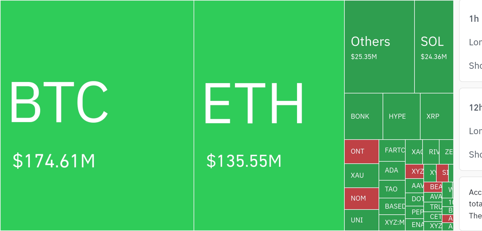 从清算金额看,比特币以1.7461亿美元居首,占整体清算总量的52%;以太坊紧随其后,清算额达1.3555亿美元,占比40.4%;Solana则录得2436万美元的清算规模,贡献7.3%的份额。