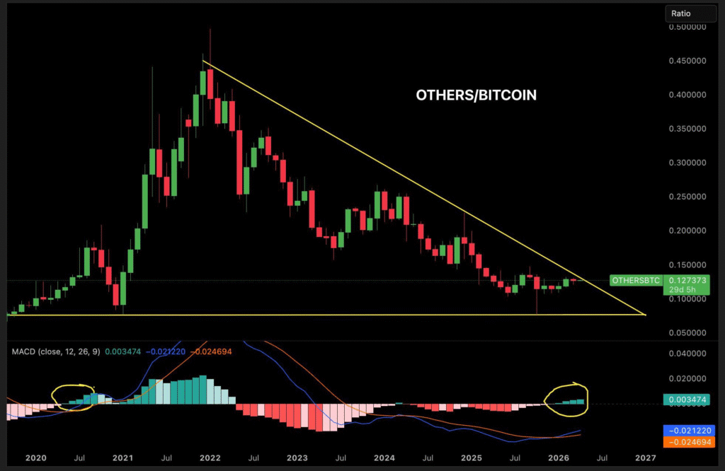 摘要:在宏观数据改善与罕见技术形态叠加下,山寨币周期重启迹象初现。尽管动能积聚,但关键价位确认前仍存不确定性,市场对地缘政治与流动性变化高度敏感。