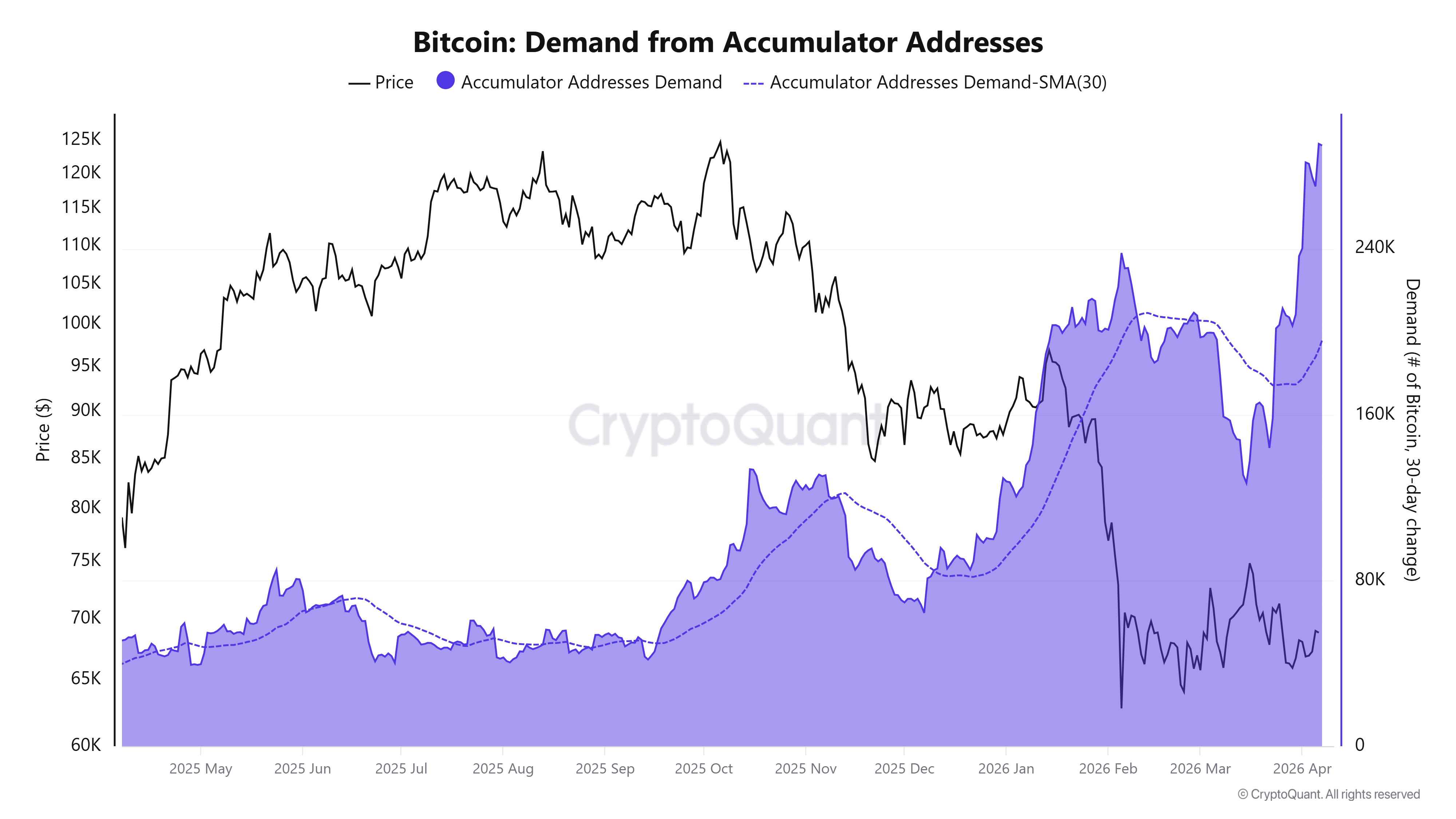 CryptoQuant监测显示,4月7日长期持币地址累计增持289,971枚BTC,较两周前增长83%,反映积累型投资者正积极布局。