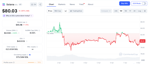 据CoinMarketCap数据,当前SOL交易价为80.03美元,短期内目标指向82美元,上行压力集中于86美元附近。尽管日线技术指标显示看跌信号,且波动区间狭窄,但市场普遍认为,一旦地缘风险缓和,叠加美联储降息预期升温,市场将重拾动能。长期展望中,有分析指出年底目标可达200美元,对应150%回报率,前提是整体生态恢复活跃。