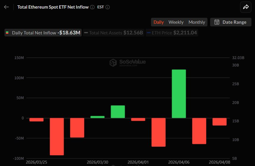 摘要:截至4月8日,美国以太坊现货ETF市场连续第二日录得资金净流出,单日达1863万美元。尽管部分基金表现亮眼,但整体呈现明显分化,头部产品成交活跃,净资产规模占比持续提升。