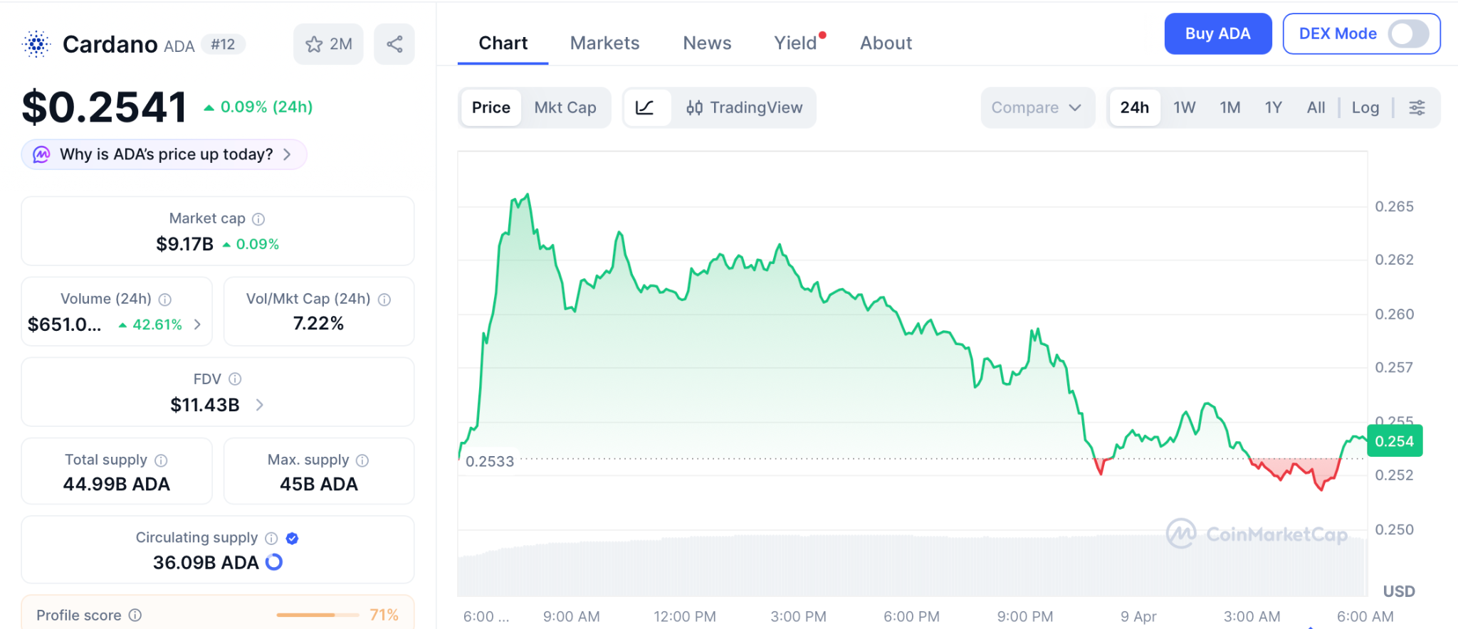 2026年4月8日,链上监测机构Santiment披露关键数据,持有1000万枚及以上ADA的钱包数量攀升至424个,创下自2025年4月以来的最高纪录。这一变化伴随交易量在一周内激增79%,推动代币价格回升至0.254美元附近,24小时内涨幅达7%。