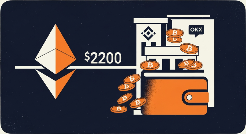 以太坊价格在2200美元上方遭遇显著压力,市场关注焦点转向交易所可售资产规模的变化。包括Coinbase、Binance、Gemini与OKX在内的四大主流交易平台,其持有的以太坊数量均呈现系统性下降趋势,预示着流动性格局正在重构。